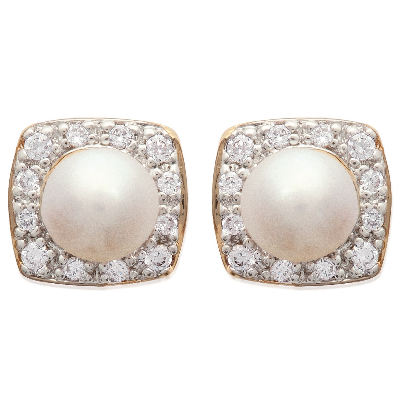 Boucles d'oreilles en plaqué or, oxyde de zirconium et perle d'eau douce.