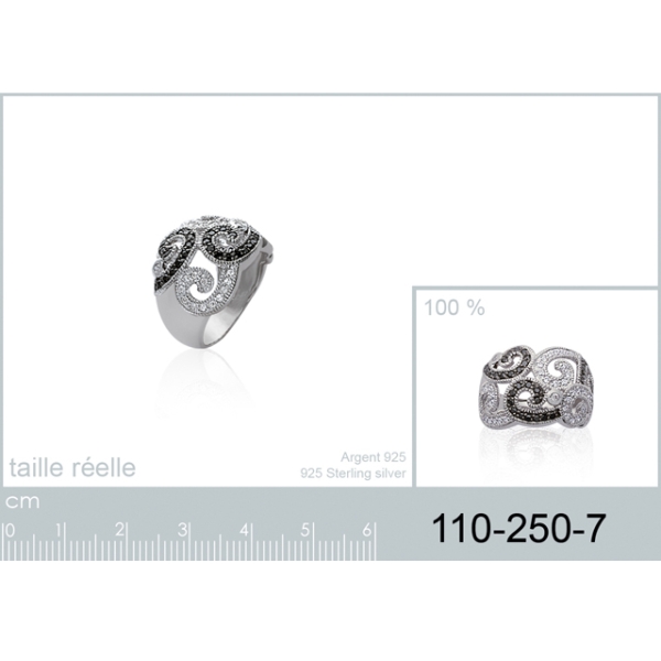 Bague argent 925/000 rhodié et pierres synthétiques.  Adulte Femme Indémodable
