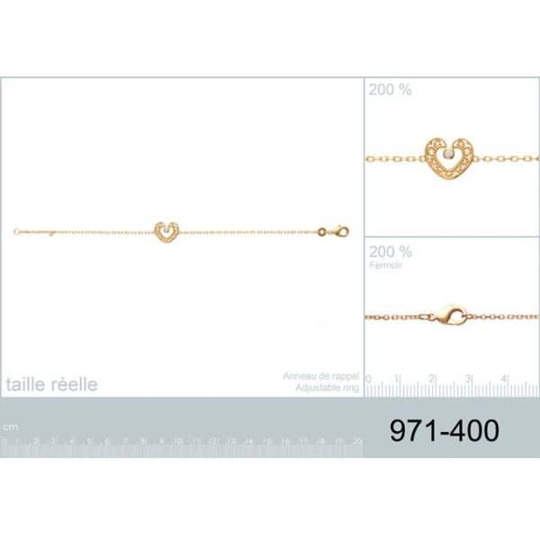Description Bracelet en plaqué or et oxyde de zirconium. Longueur 16/18 cm [Guide des tailles] Largeur 11 mm Matière(s) Plaqué or , Zirconium . Nos bijoux en plaqué or sont faits sur une base de laiton et recouverts d'or 18 carats à 3 microns sans dispersion. Cela signifie que nous garantissons 3 microns d'or sur n'importe quelle partie du bijou. Sur la plupart de nos bijoux empierrés, nous montons à 5 microns d'or 18 carats. Pour finir, nous faisons également une finition avec de l'or 24 carats afin de donner un plus bel éclat à nos bijoux. Fermoir Mousqueton Couleur(s) dominante(s) Doré , Multicolore , Transparent Public Adulte . Genre Femme . Saison Indémodable . Thème(s) Amour . Collection Broderie Rayon en magasin T117 Cliquez sur une matière, un thème, une couleur ou une collection pour voir tous les articles associés.