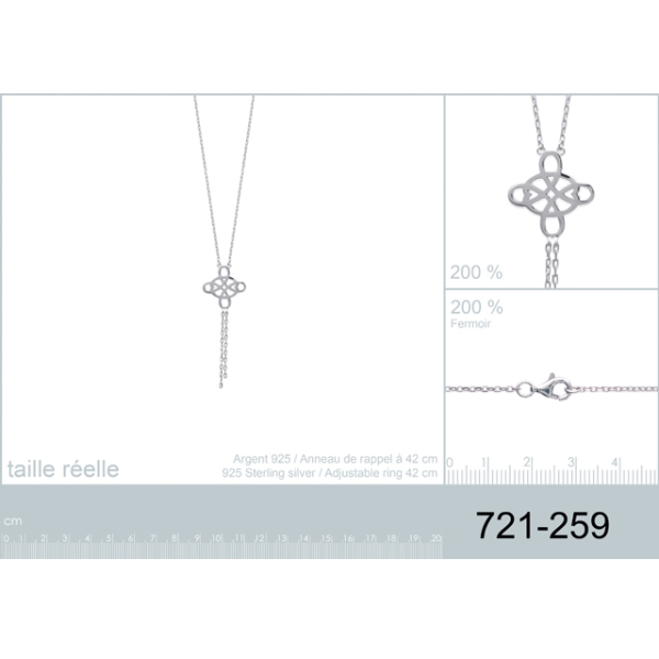 Description Collier en argent 925/000 rhodié. Longueur 42/45 cm [Guide des tailles] Matière(s) Argent 925 rhodié . Afin de protéger votre bijou de l'oxydation naturelle de l'argent, il est recouvert d'une couche de rhodium (un métal rare et précieux) qui garantira sa brillance dans le temps et préviendra les risques d'allergie. Notez cependant, que le bijou est alors d'une teinte plus grisée et moins brillante que l'argent non rhodié. Poids d'argent 3,83 gramme(s) Fermoir Mousqueton À noter Pendant 20 x 56 mm Couleur(s) dominante(s) Argenté Public Adulte . Genre Femme . Saison Indémodable . Collection CelticMania Cliquez sur une matière, un thème, une couleur ou une collection pour voir tous les articles associés.