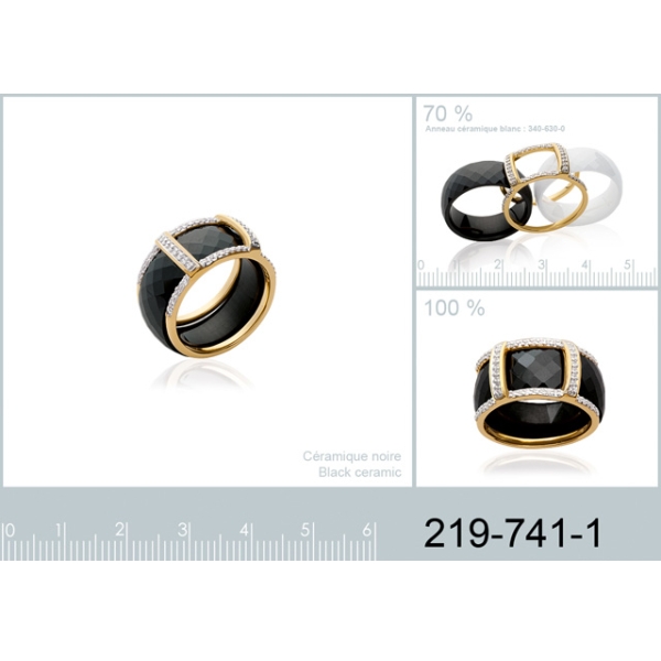 Bague en plaqué or, oxyde de zirconium et céramique.<br/>L'anneau en céramique échangeable mesure 8 mm de largeur.<br/>La bague B3406300 peut y être insérée. Lot  Adulte Femme Indémodable