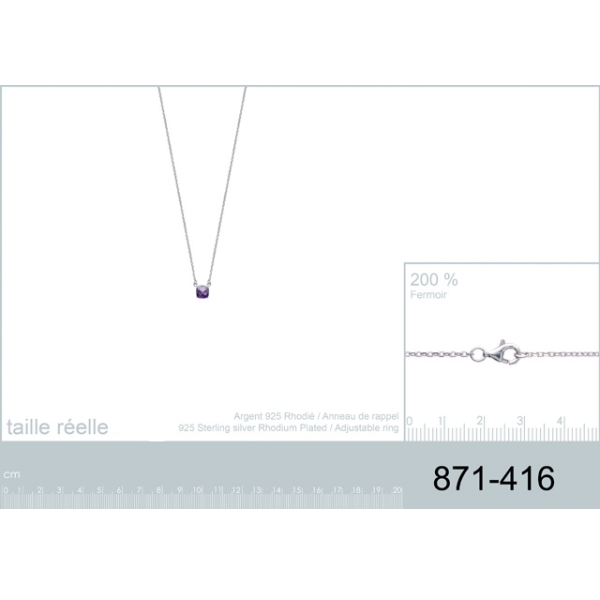 Collier en argent 925/000 rhodié et pierre synthétique.