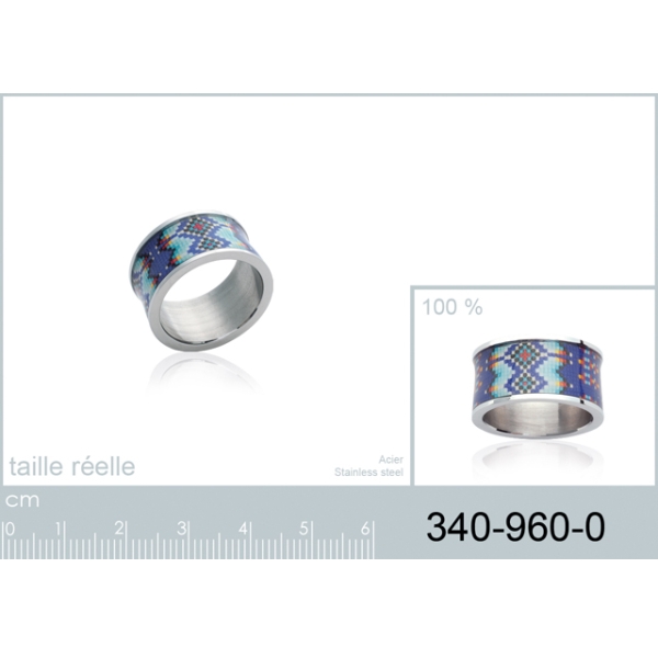 Description Bague en acier. Largeur 10 mm Matière(s) Acier . L'acier utilisé dans la bijouterie existe sous plusieurs qualités. Nous utilisons principalement la qualité 316L, qualité qui est utilisée en chirurgie. Cet acier est donc inoxydable et reste très résistant. Couleur(s) dominante(s) Multicolore Public Adulte . Genre Femme . Saison Indémodable . Collection Ethnigraphique Cliquez sur une matière, un thème, une couleur ou une collection pour voir tous les articles associés.