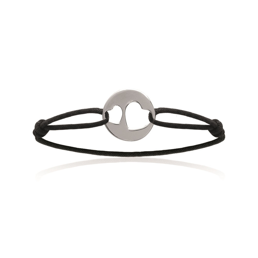 Bracelet en argent 925/000 rhodié et coton.
