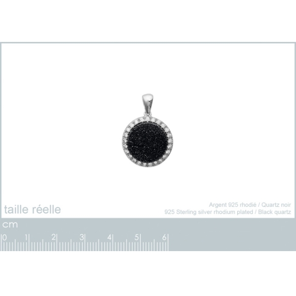 Pendentif en argent 925/000 rhodié, oxyde de zirconium et quartz noir.