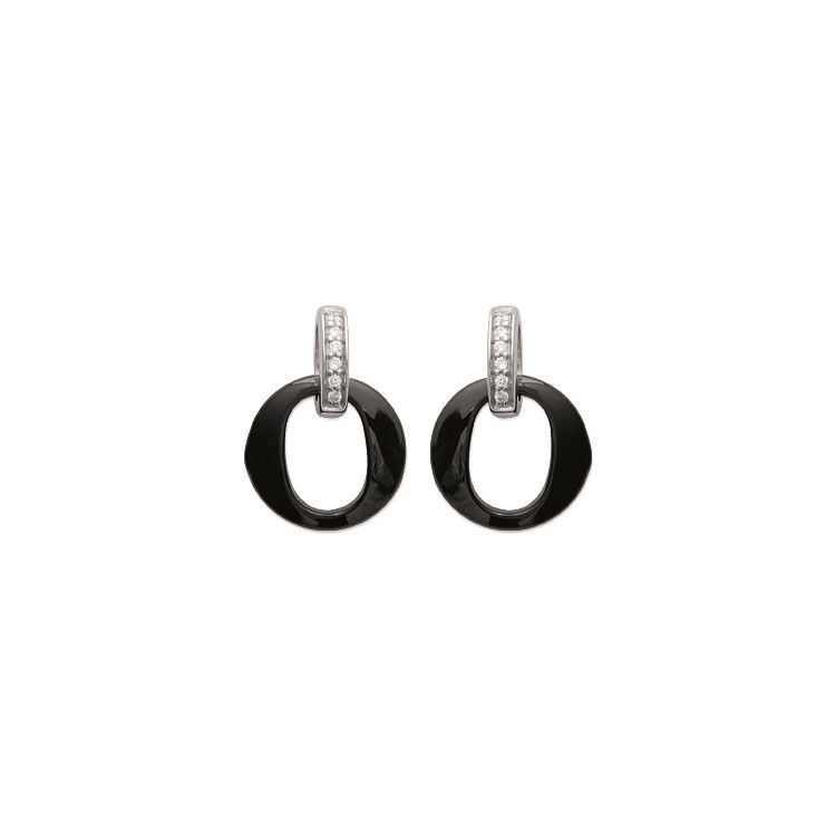 Boucles d'oreilles en argent 925/000 rhodié, oxyde de zirconium et céramique.