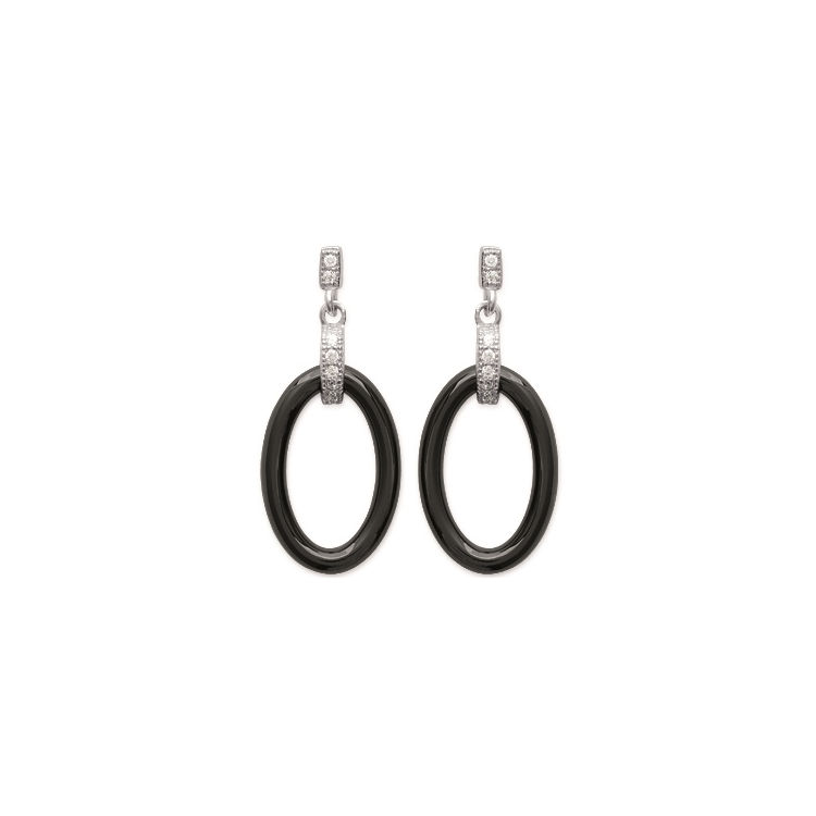 Boucles d'oreilles en argent 925/000 rhodié, oxyde de zirconium et céramique.