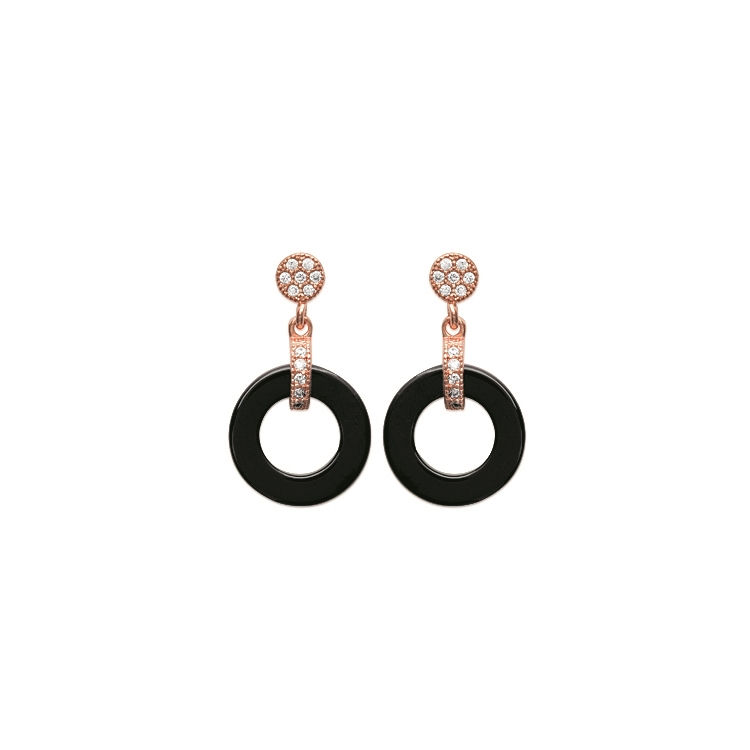 Boucles d'oreilles en plaqué or rose, oxyde de zirconium et céramique.