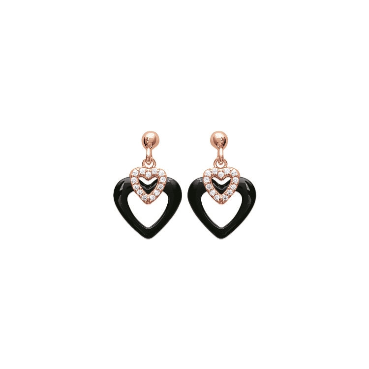 Boucles d'oreilles en plaqué or rose, oxyde de zirconium et céramique.