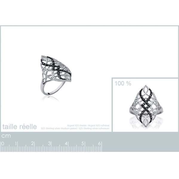 Bague en argent 925/000 rhodié, oxyde de zirconium et ruthénium.