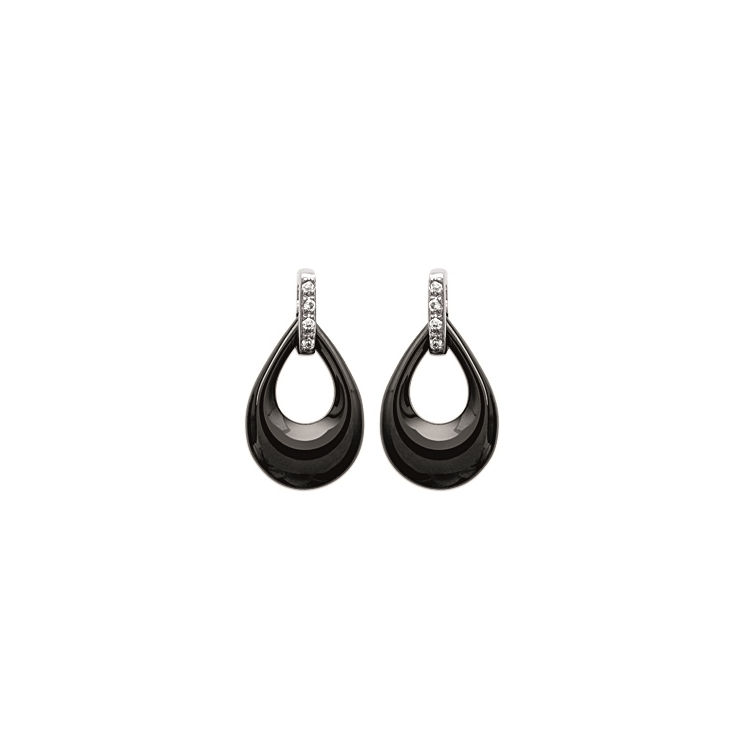 Boucles d'oreilles en argent 925/000 rhodié, oxyde de zirconium et céramique.