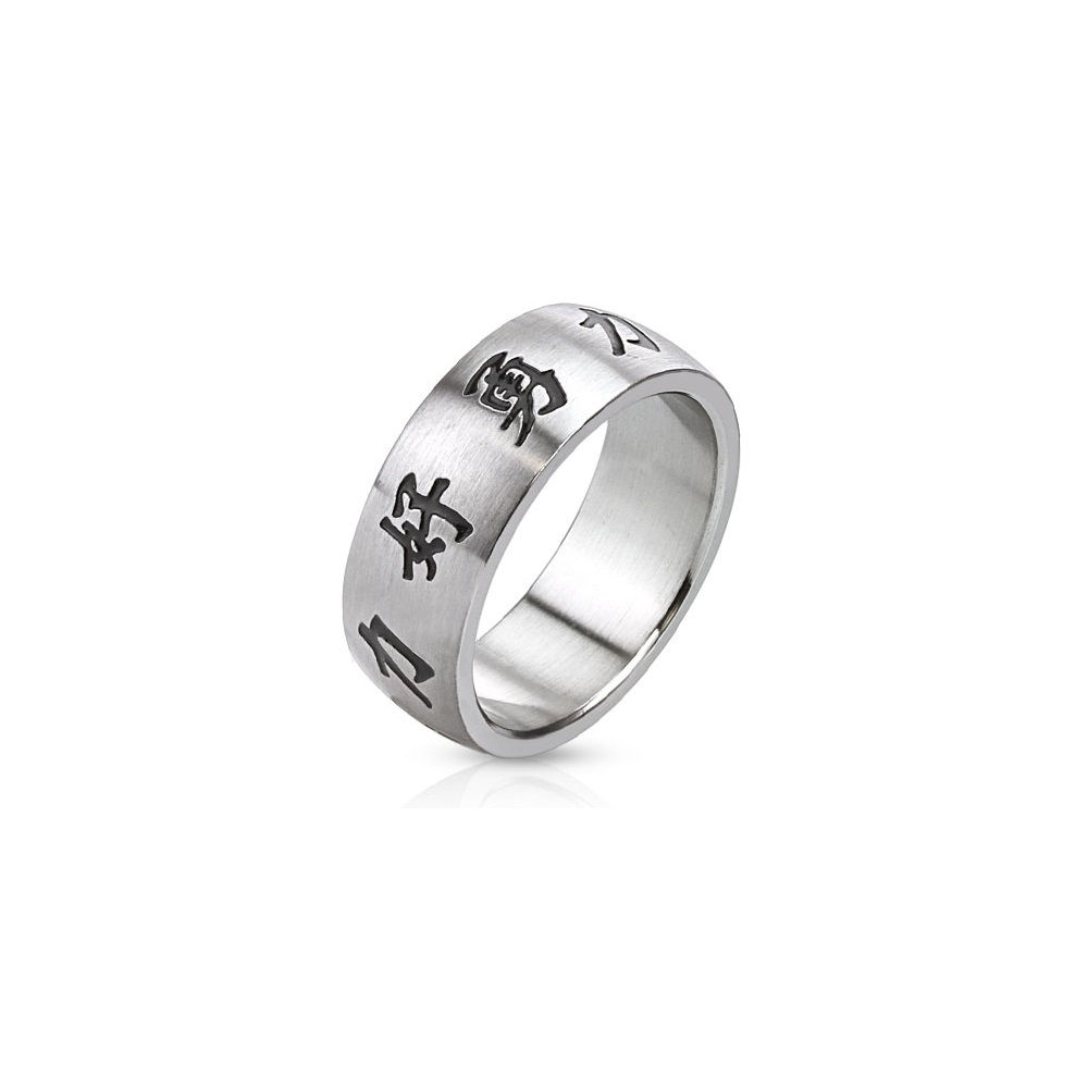 Bague symboles chinois en acier.