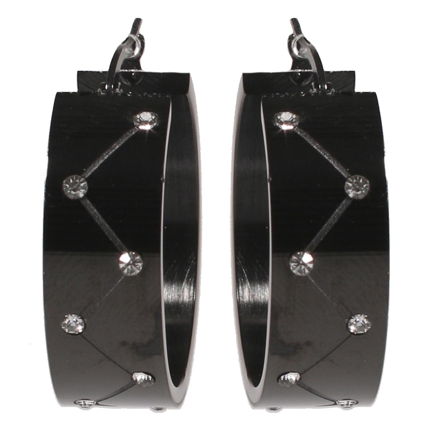 Description Boucles d'oreilles créoles en acier et verre. Largeur 1 cm Diamètre 26 mm [Guide des tailles] Matière(s) Acier , Verre . L'acier utilisé dans la bijouterie existe sous plusieurs qualités. Nous utilisons principalement la qualité 316L, qualité qui est utilisée en chirurgie. Cet acier est donc inoxydable et reste très résistant. Fermoir Charnière avec cran Couleur(s) dominante(s) Noir Public Adulte . Genre Femme . Saison Indémodable . Cliquez sur une matière, un thème, une couleur ou une collection pour voir tous les articles associés.