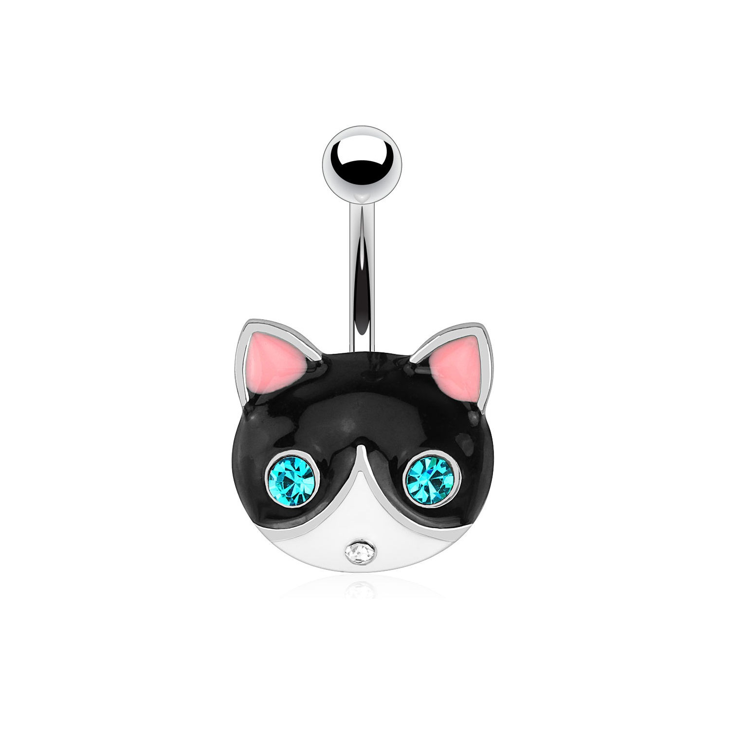 Piercing chat en acier chirurgical 316L, époxy et verre.