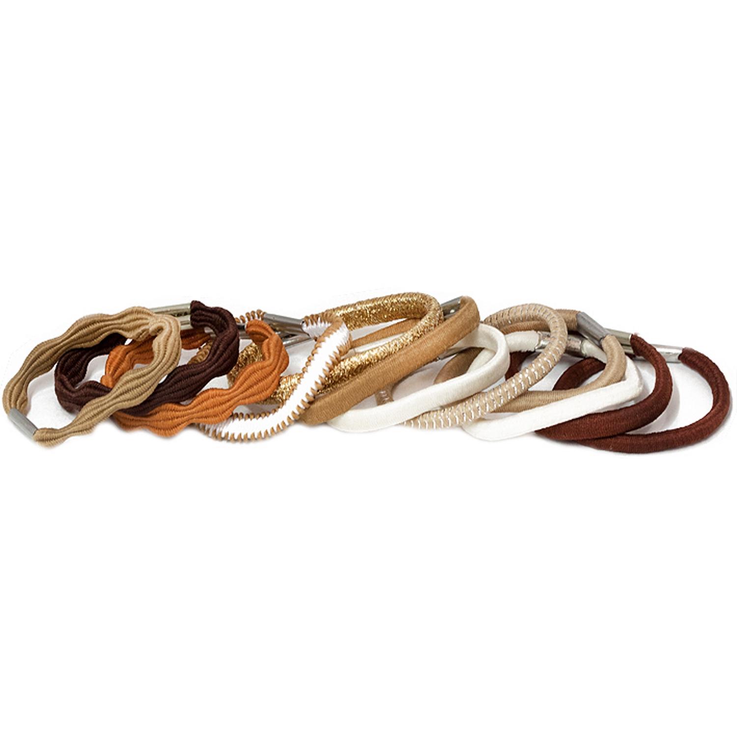 Lot de 12 élastiques en textile de couleur et métal argenté.