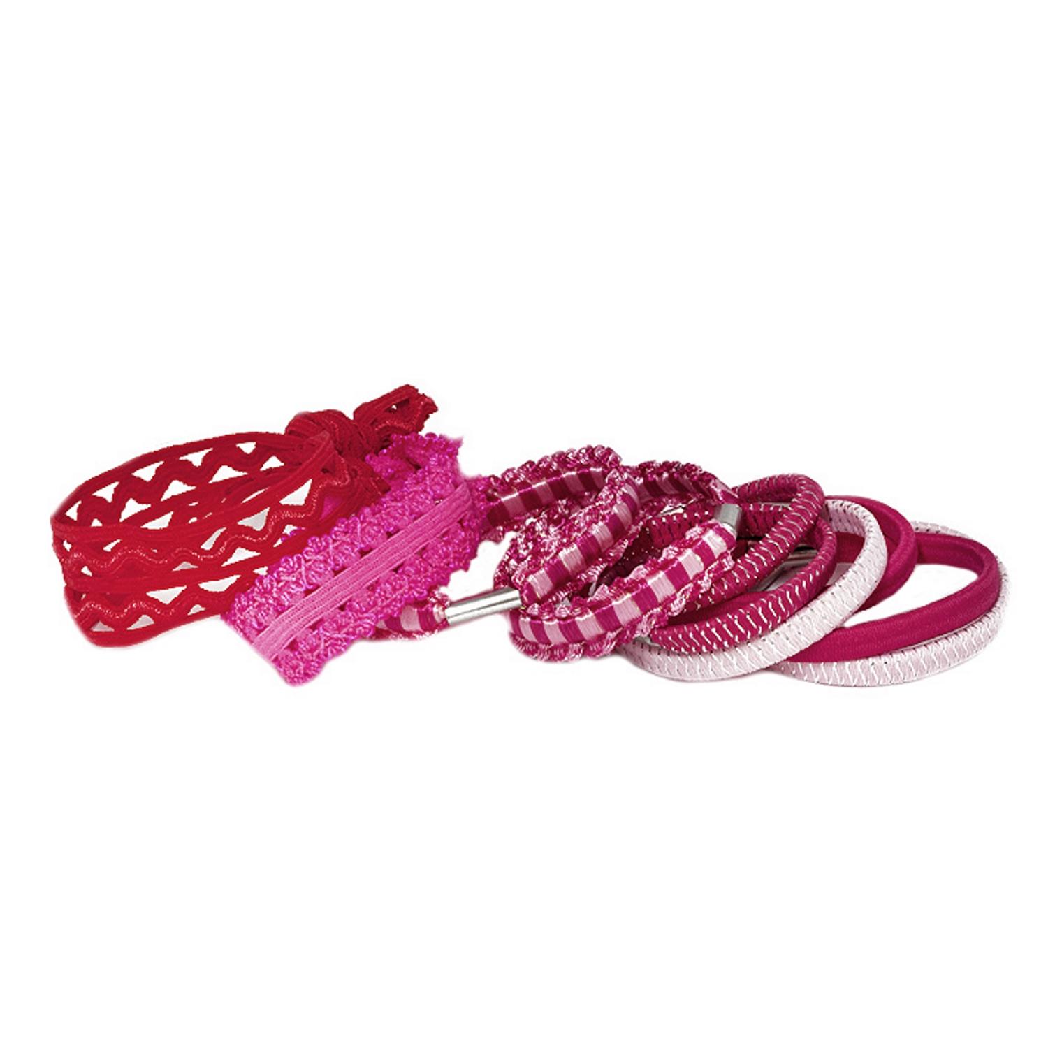 Lot de 10 élastiques en textile de couleur et métal argenté.