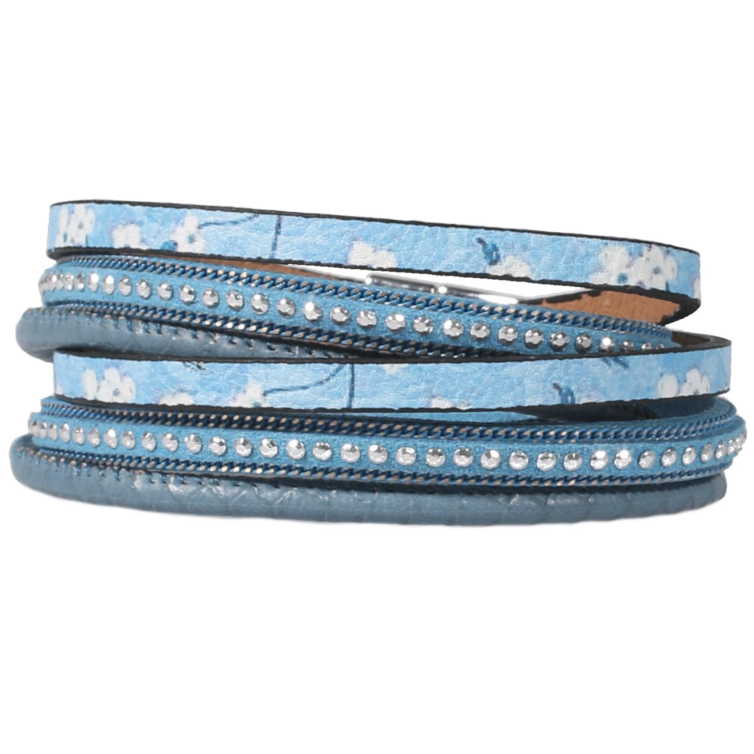 Bracelet fantaisie en métal argenté, métal peint, suédine et polyuréthane.