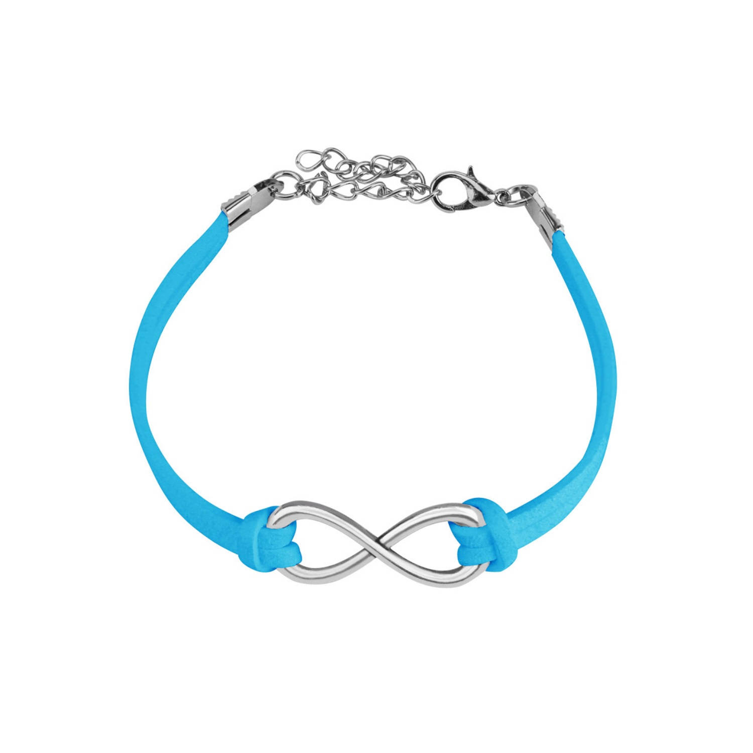 Bracelet fantaisie en textile et métal argenté. Cordon Infini Turquoise  Adolescent Adulte Femme Fille Indémodable Symboles