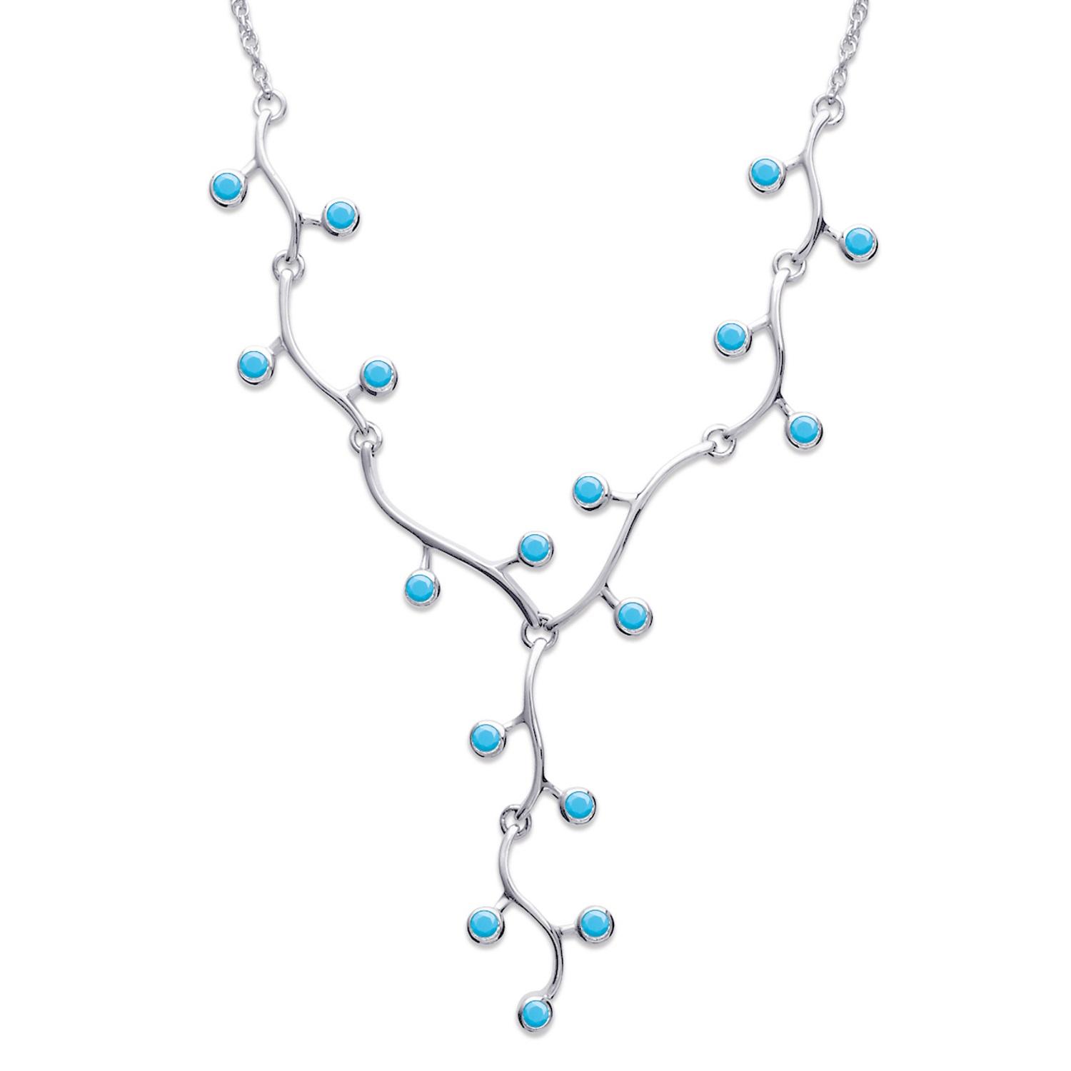 Collier en argent 925/000 rhodié et pierres d'imitation turquoise.