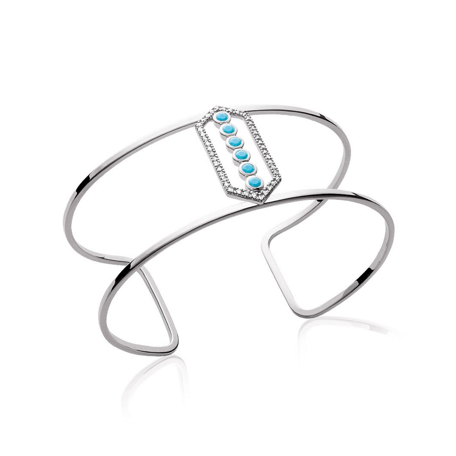 Bracelet manchette rigide en argent 925/000 rhodié, oxyde de zirconium et pierres d'imitation turquoise.
