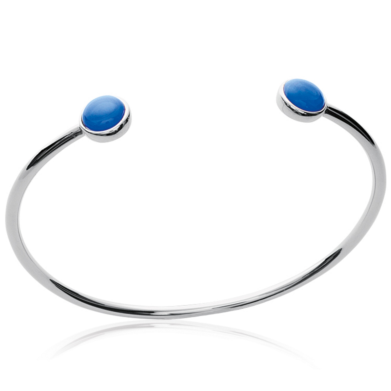 Bracelet jonc rigide en argent 925/000 rhodié et pierres synthétiques.