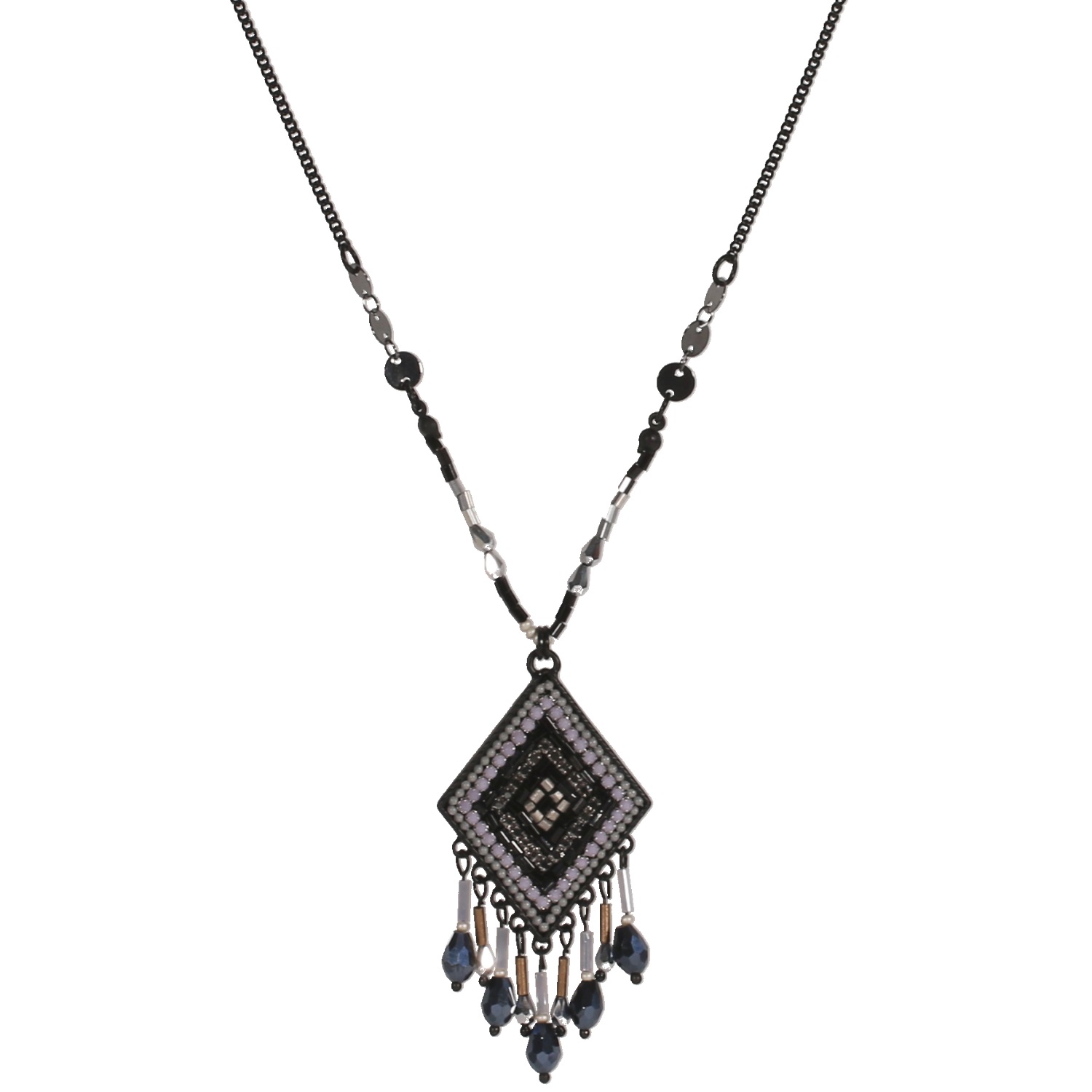 Collier fantaisie en métal peint, métal canon de fusil et rocaille.