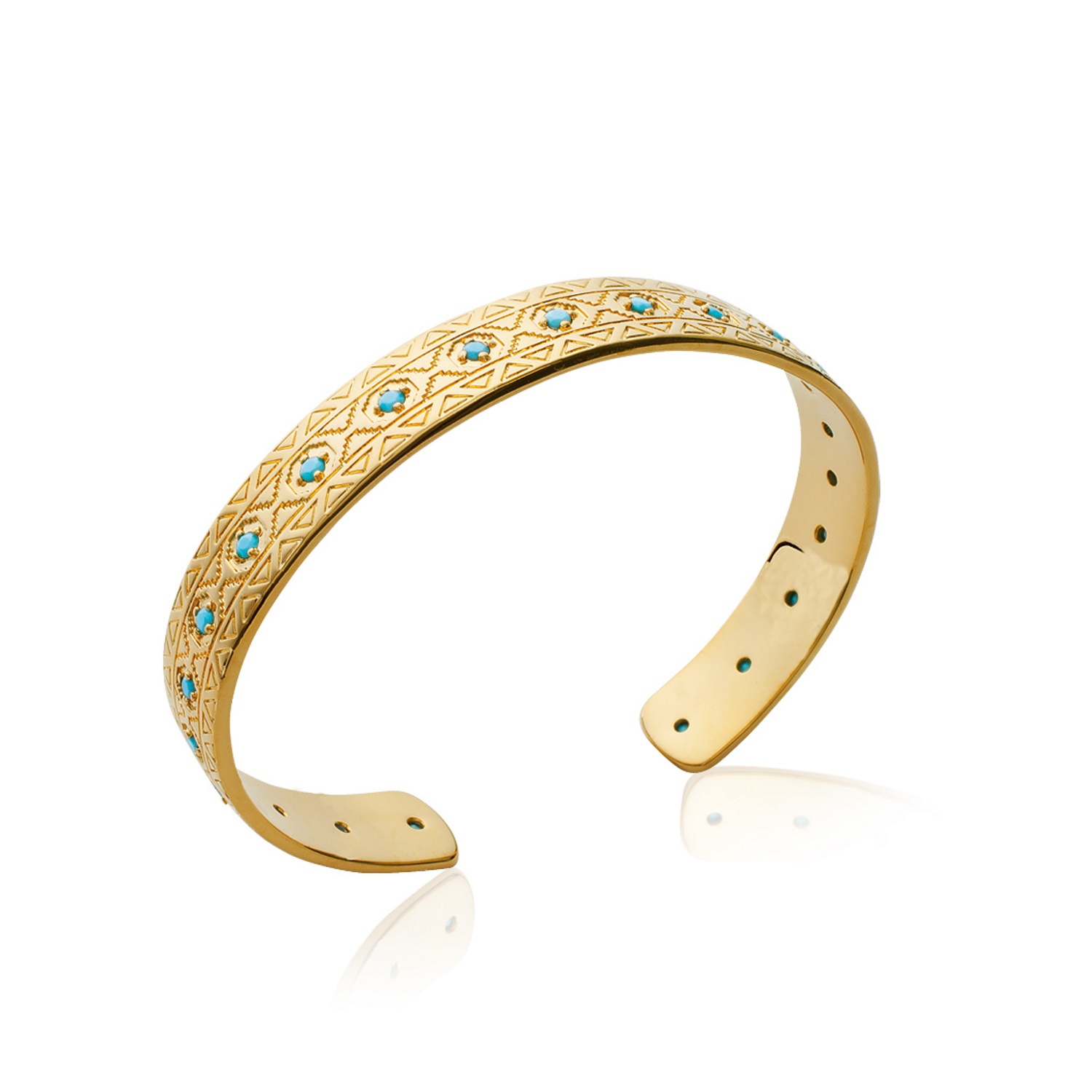 Description Bracelet jonc rigide en plaqué or et pierres d'imitation turquoise. Largeur 9 mm Diamètre 58 mm [Guide des tailles] Matière(s) Pierre synthétique , Plaqué or . Nos bijoux en plaqué or sont faits sur une base de laiton et recouverts d'or 18 carats à 3 microns sans dispersion. Cela signifie que nous garantissons 3 microns d'or sur n'importe quelle partie du bijou. Sur la plupart de nos bijoux empierrés, nous montons à 5 microns d'or 18 carats. Pour finir, nous faisons également une finition avec de l'or 24 carats afin de donner un plus bel éclat à nos bijoux. Fermoir Aucun Couleur(s) dominante(s) Bleu , Doré Public Adulte . Genre Femme . Saison Indémodable . Cliquez sur une matière, un thème, une couleur ou une collection pour voir tous les articles associés.