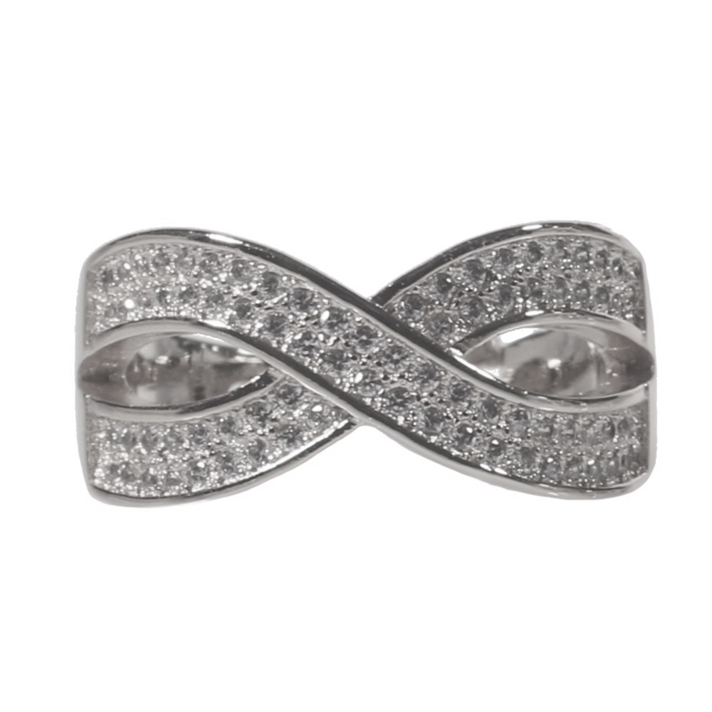 Bague fantaisie Infini en métal argenté et oxyde de zirconium.