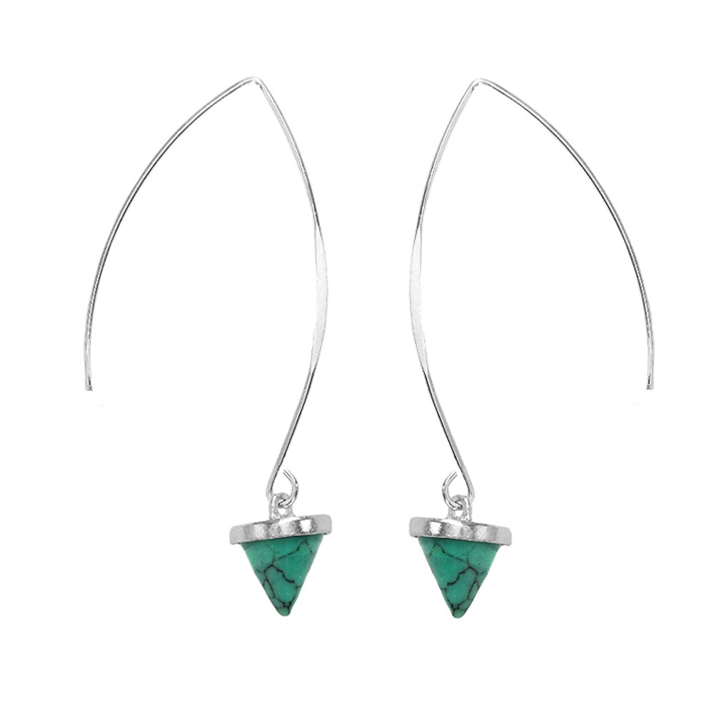 Boucles d'oreilles fantaisie en métal argenté et pierre d'imitation turquoise.