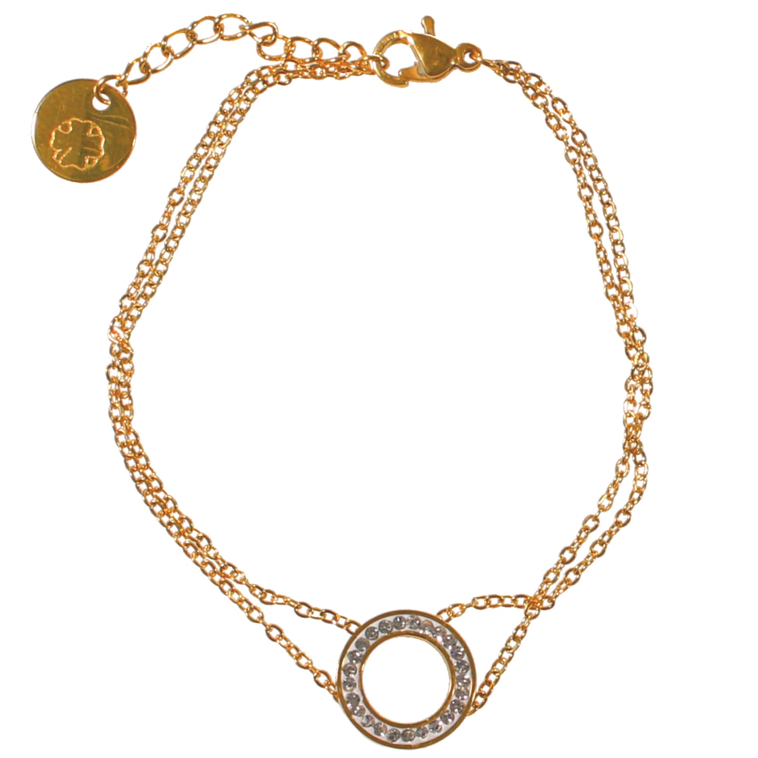 Description Bracelet en acier doré et cristaux synthétiques. 2 rangs. Longueur 15.5+2.5 cm [Guide des tailles] Largeur 12 mm Matière(s) Acier , Verre . L'acier utilisé dans la bijouterie existe sous plusieurs qualités. Nous utilisons principalement la qualité 316L, qualité qui est utilisée en chirurgie. Cet acier est donc inoxydable et reste très résistant. Fermoir Mousqueton Couleur(s) dominante(s) Doré Public Adolescent , Adulte . Genre Femme , Fille . Saison Indémodable . Cliquez sur une matière, un thème, une couleur ou une collection pour voir tous les articles associés.