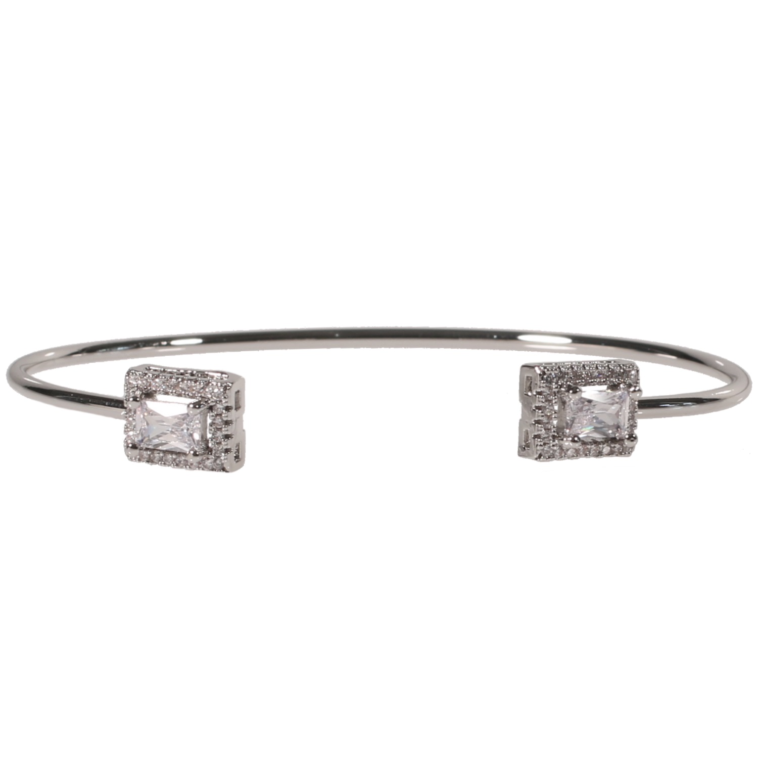 Bracelet jonc fantaisie rigide en métal argenté et oxyde de zirconium.