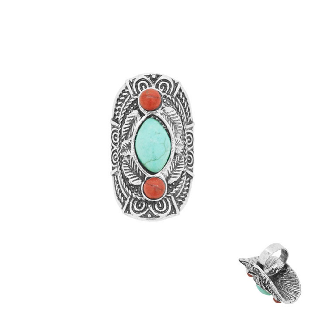 Bague fantaisie en métal argenté vieilli et rocaille.