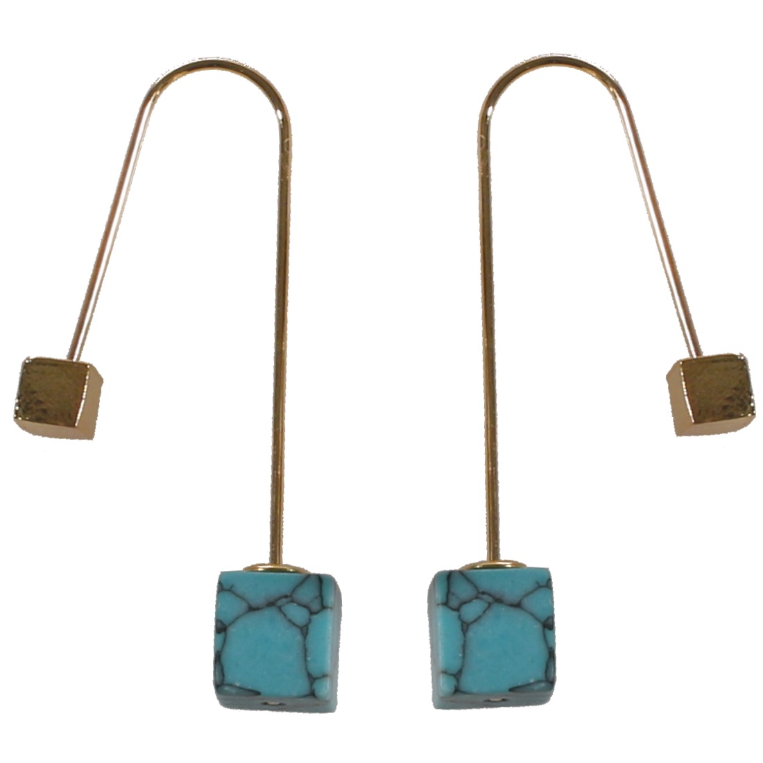 Boucles d'oreilles fantaisie en métal doré et pierres d'imitation turquoise.