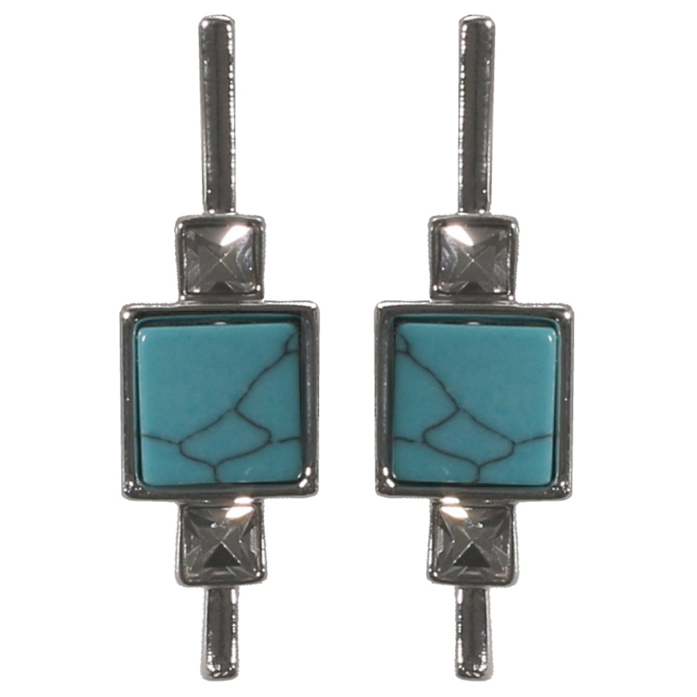 Boucles d'oreilles fantaisie en métal argenté, pierres d'imitation turquoise et cristaux synthétiques.