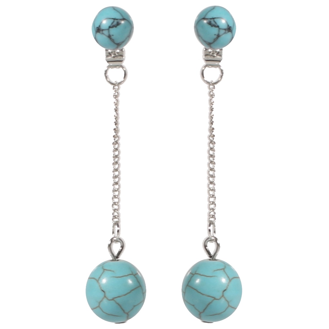 Boucles d'oreilles fantaisie en métal argenté et pierres d'imitation turquoise.