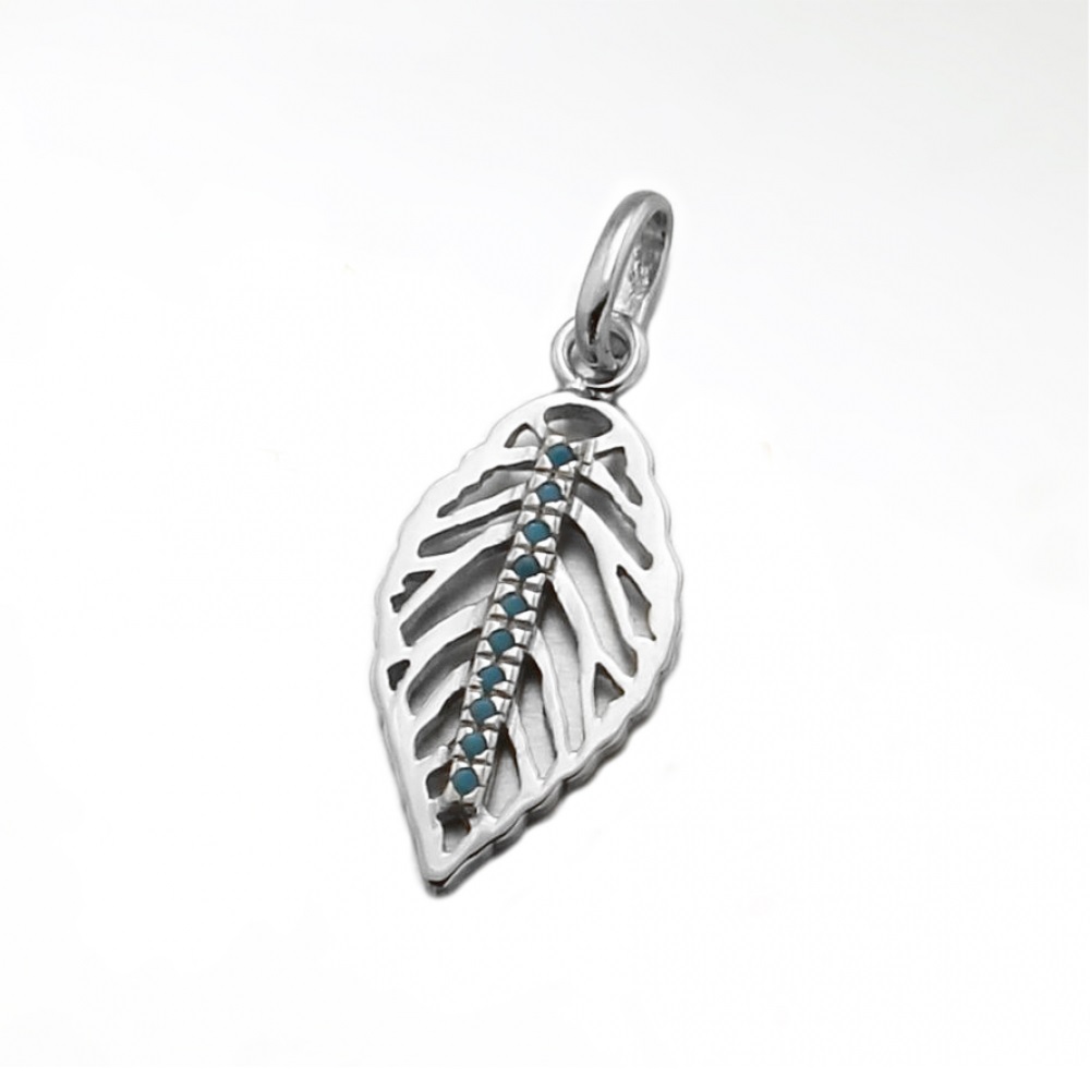 Pendentif Feuille en argent 925/000 rhodié et pierres d'imitation turquoise.
