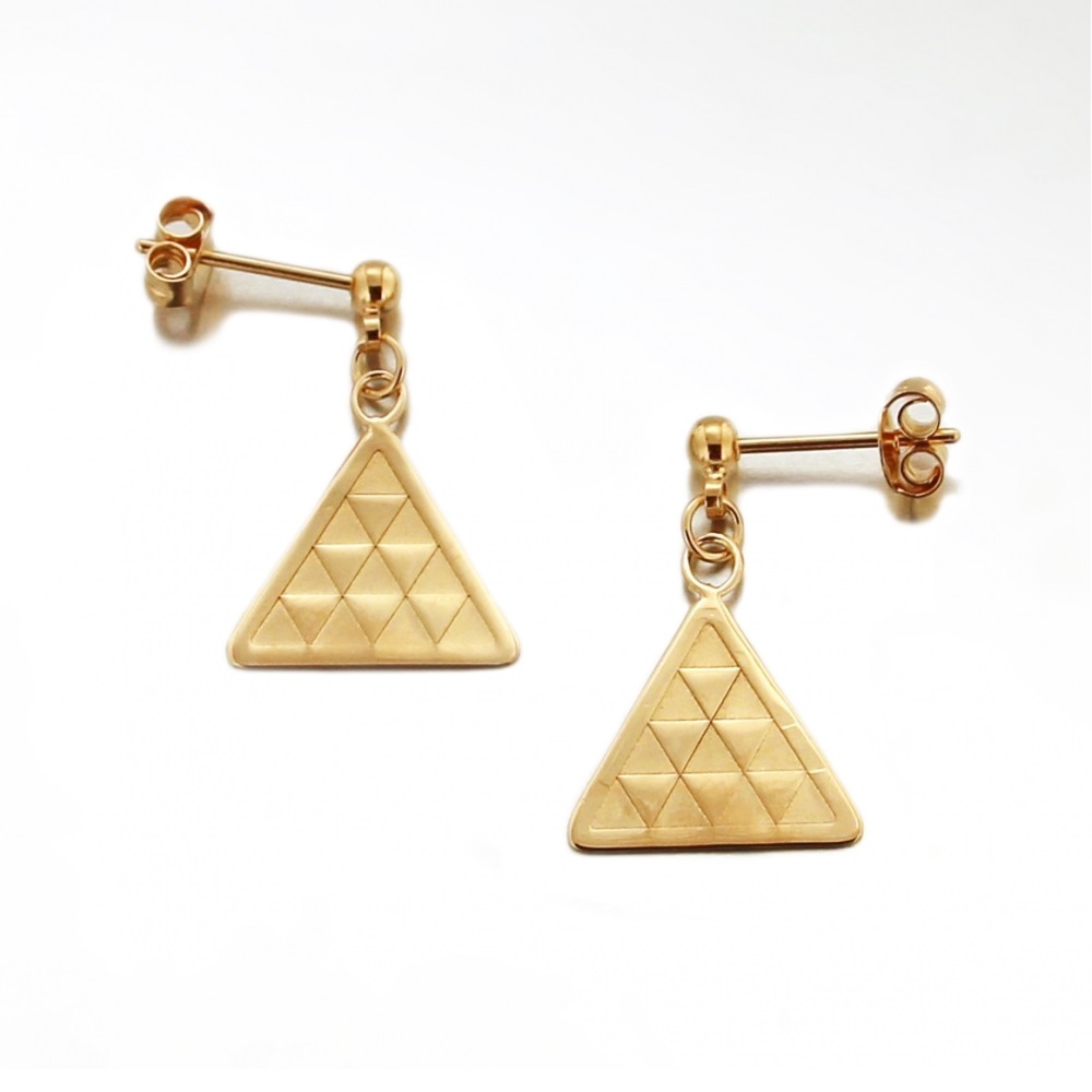 Description Boucles d'oreilles Triangles en plaqué or. Largeur 14 mm Hauteur 22 mm Matière(s) Plaqué or . Nos bijoux en plaqué or sont faits sur une base de laiton et recouverts d'or 18 carats à 3 microns sans dispersion. Cela signifie que nous garantissons 3 microns d'or sur n'importe quelle partie du bijou. Sur la plupart de nos bijoux empierrés, nous montons à 5 microns d'or 18 carats. Pour finir, nous faisons également une finition avec de l'or 24 carats afin de donner un plus bel éclat à nos bijoux. Fermoir Tiges poussettes Couleur(s) dominante(s) Doré Public Adolescent , Adulte . Genre Femme , Fille . Saison Indémodable . Cliquez sur une matière, un thème, une couleur ou une collection pour voir tous les articles associés.