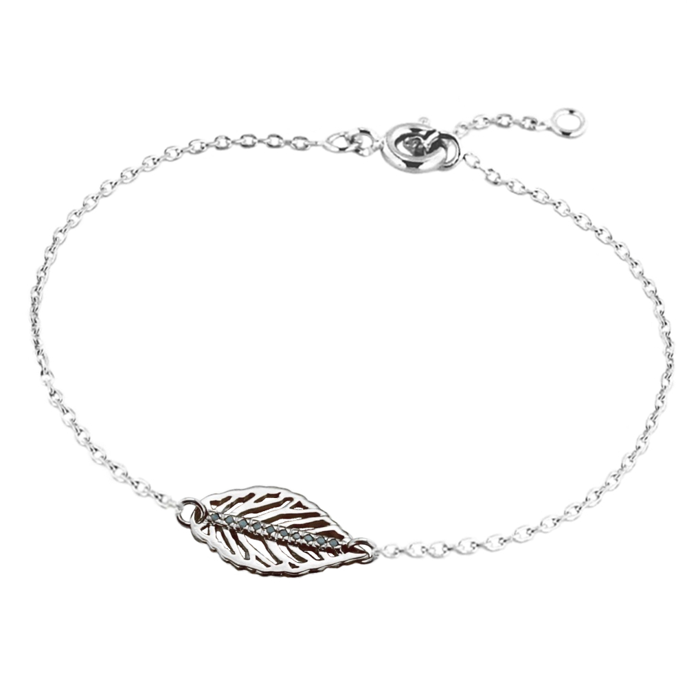 Bracelet Feuille en argent 925/000 rhodié et pierres d'imitation turquoise.