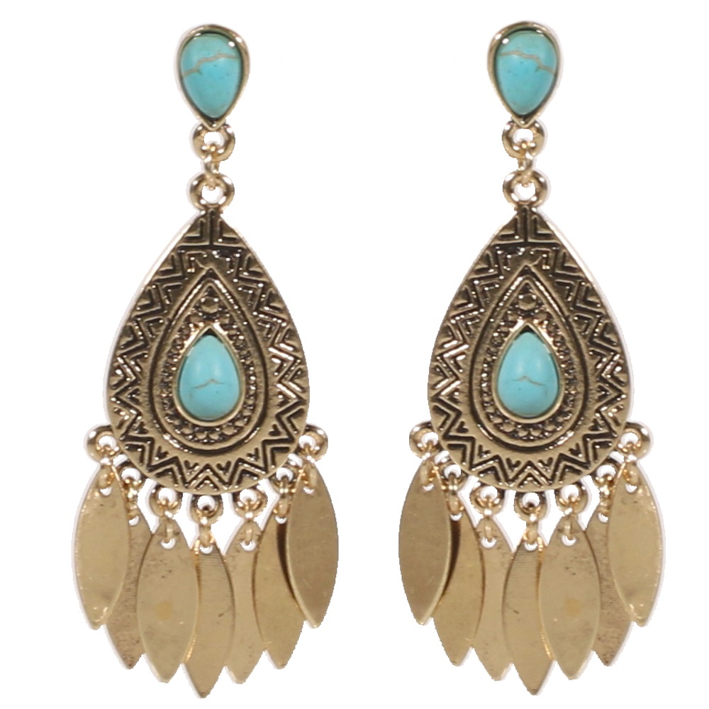 Boucles d'oreilles fantaisie en métal doré vieilli et rocaille.
