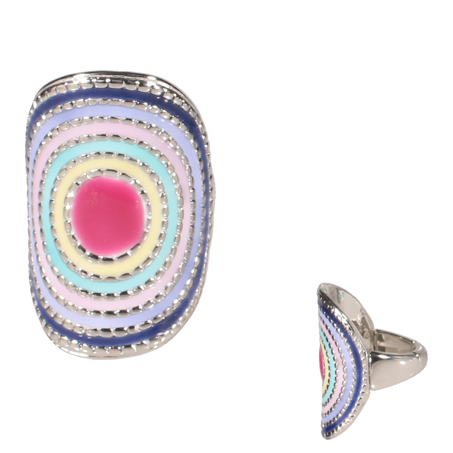 Bague fantaisie en métal argenté et émail.