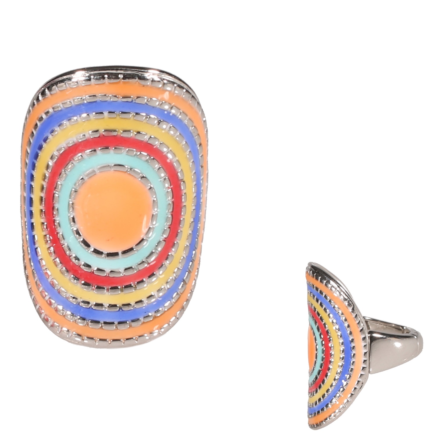 Bague fantaisie en métal argenté et émail.