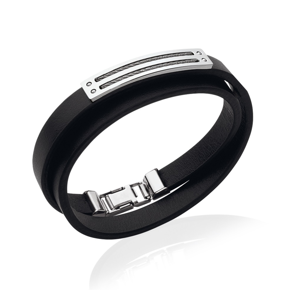 Description Bracelet pour homme en acier et cuir. 2 tours. Cliquez sur une matière, un thème, une couleur ou une collection pour voir tous les articles associés.