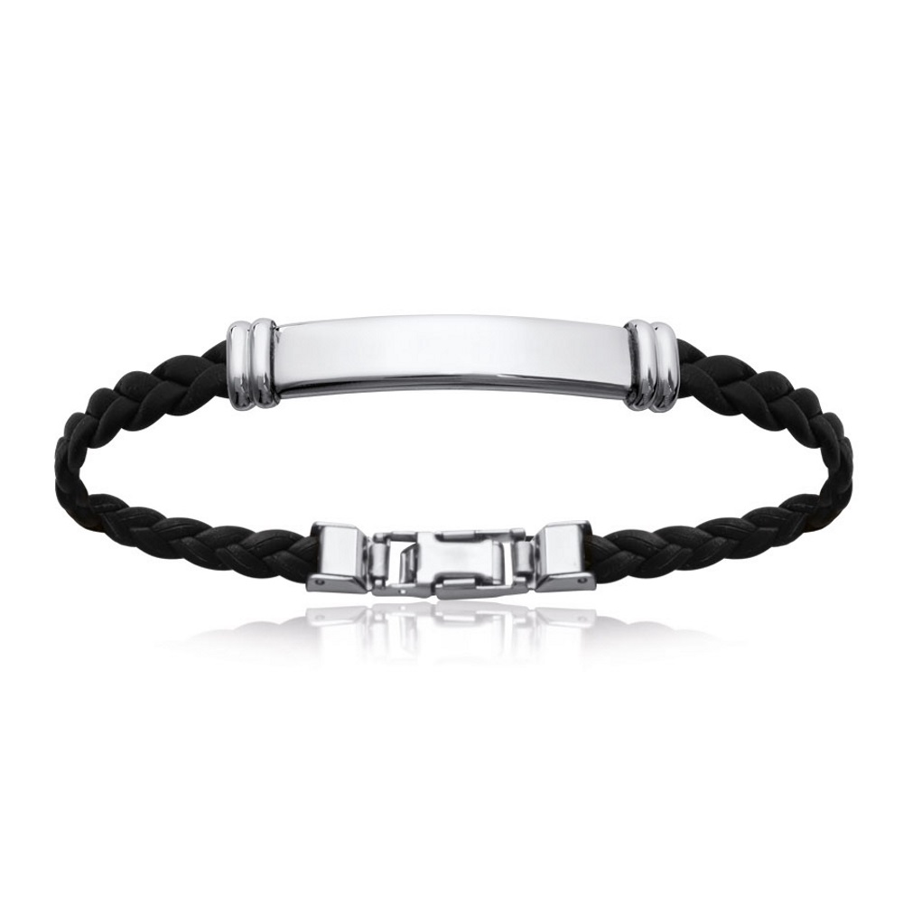 Bracelet gourmette en acier argenté et cuir noir.<br/><br/>Absolument indémodables,<br/>Les gourmettes personnalisables sont idéales à offrir aux adultes comme aux adolescent.e.s.<br/><br/>Ce modèle est généralement considéré comme plutôt masculin,<br/>Mais peut bien entendu être porté par toutes et tous !  Adolescent Adulte Garçon Gravure Homme Indémodable Bracelet gourmette en acier argenté et cuir noir.<br/><br/>Absolument indémodables,<br/>Les gourmettes personnalisables sont idéales à offrir aux adultes comme aux adolescent.e.s.<br/><br/>Ce modèle est généralement considéré comme plutôt masculin,<br/>Mais peut bien entendu être porté par toutes et tous !  Adolescent Adulte Garçon Gravure Homme Indémodable