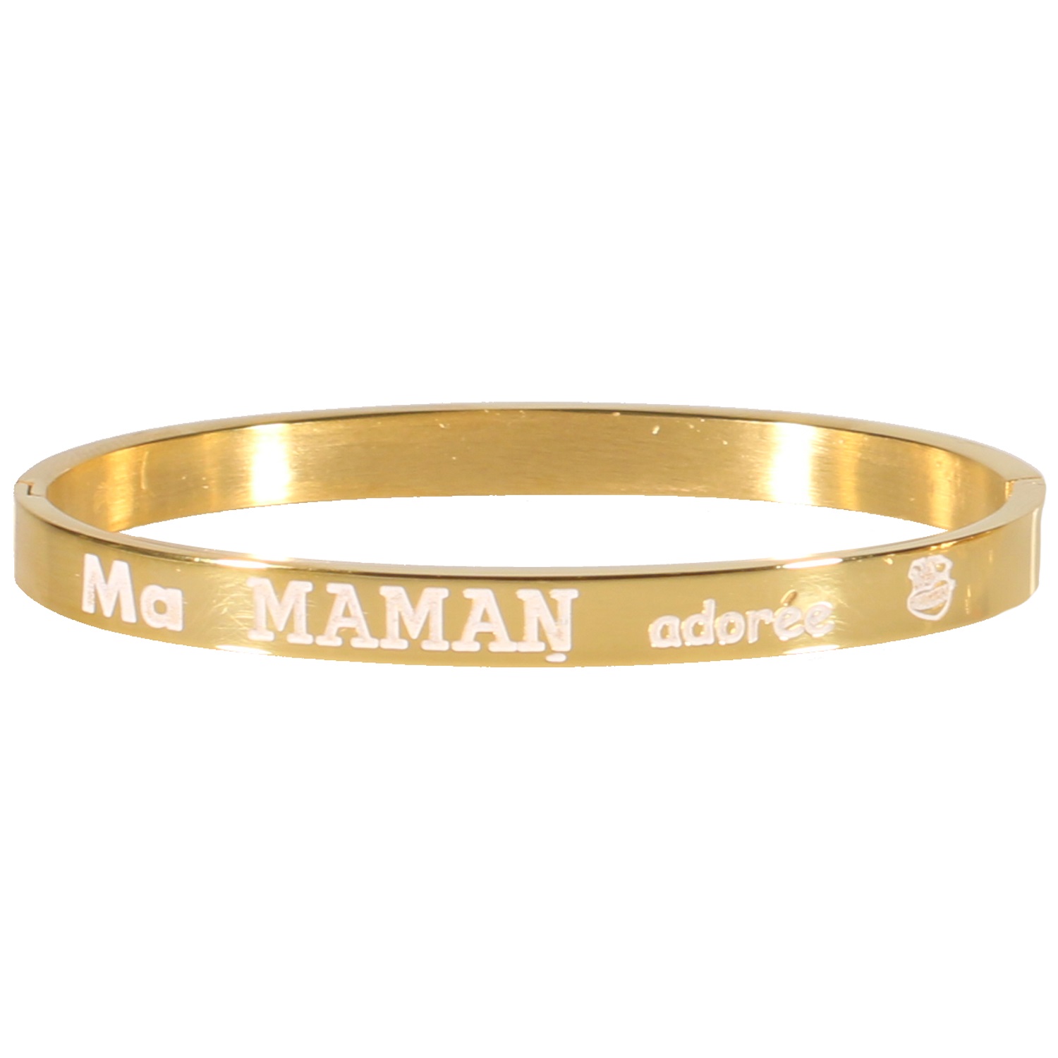 Description Bracelet jonc rigide en acier doré avec l'inscription en blanc MA MAMAN adorée. Cliquez sur une matière, un thème, une couleur ou une collection pour voir tous les articles associés.