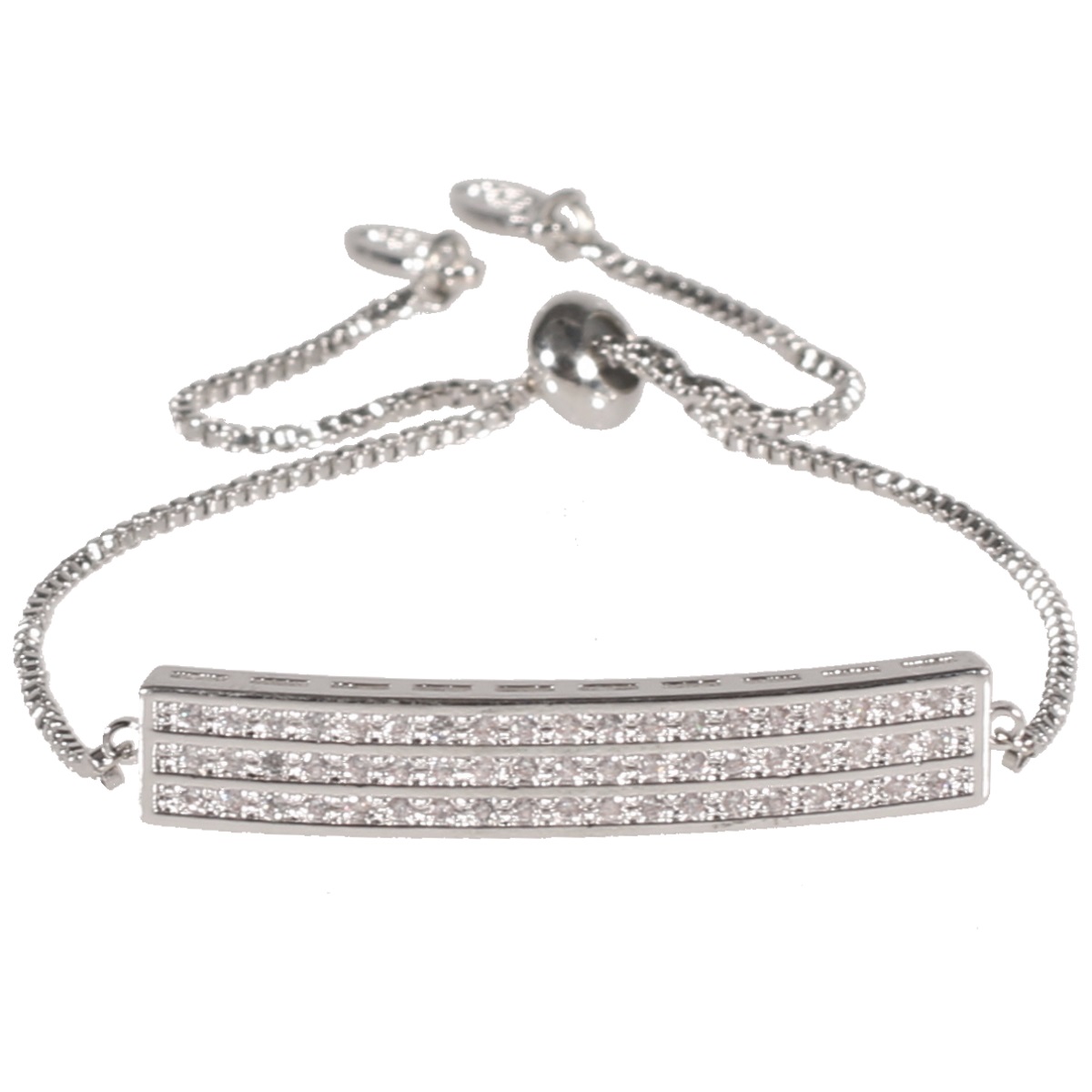 Bracelet fantaisie en métal argenté de plaquage supérieur et de cristaux synthétiques en oxyde de zirconium.