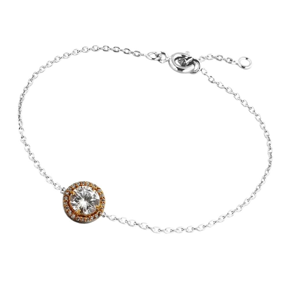 Bracelet en argent 925/000 rhodié, plaqué or et cristaux sertis griffe en oxyde de zirconium.