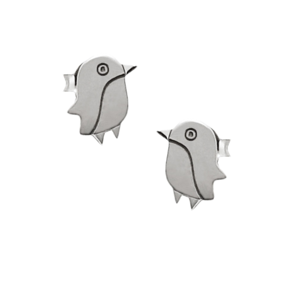 Boucles d'oreilles oiseau en argent 925/000 rhodié.