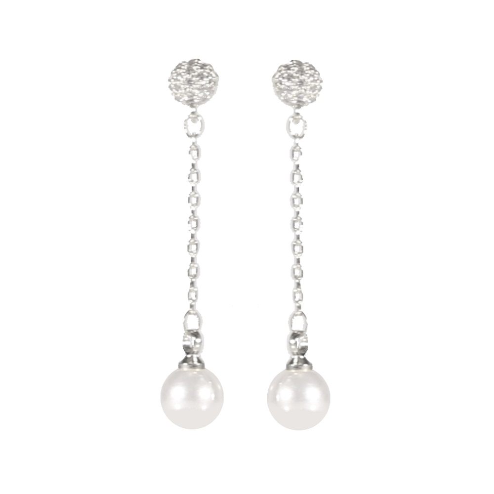Description Boucles d'oreilles pendantes en métal argenté, strass couleur cristal et perles synthétiques. Cliquez sur une matière, un thème, une couleur ou une collection pour voir tous les articles associés.