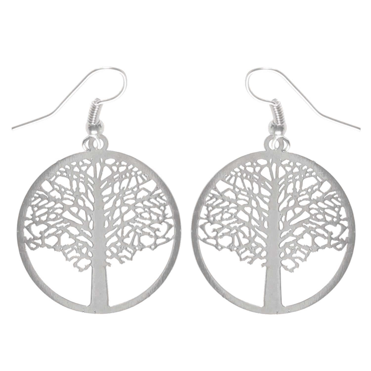 Boucles d'oreilles pendantes arbre de vie en métal argenté.