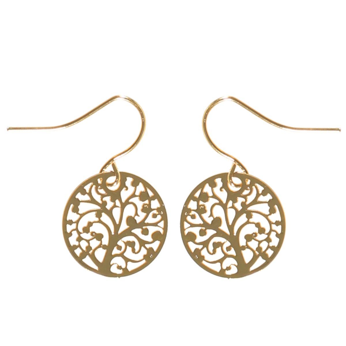 Boucles d'oreilles pendantes arbre de vie en métal doré.